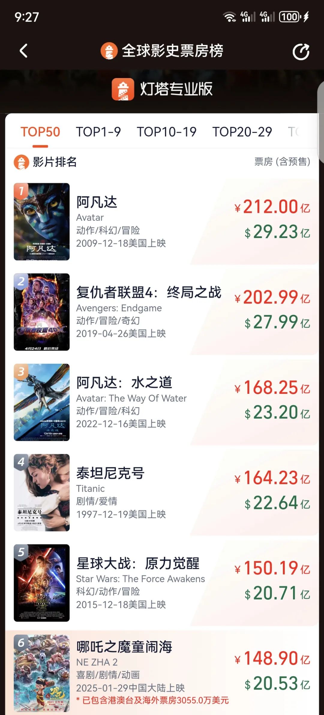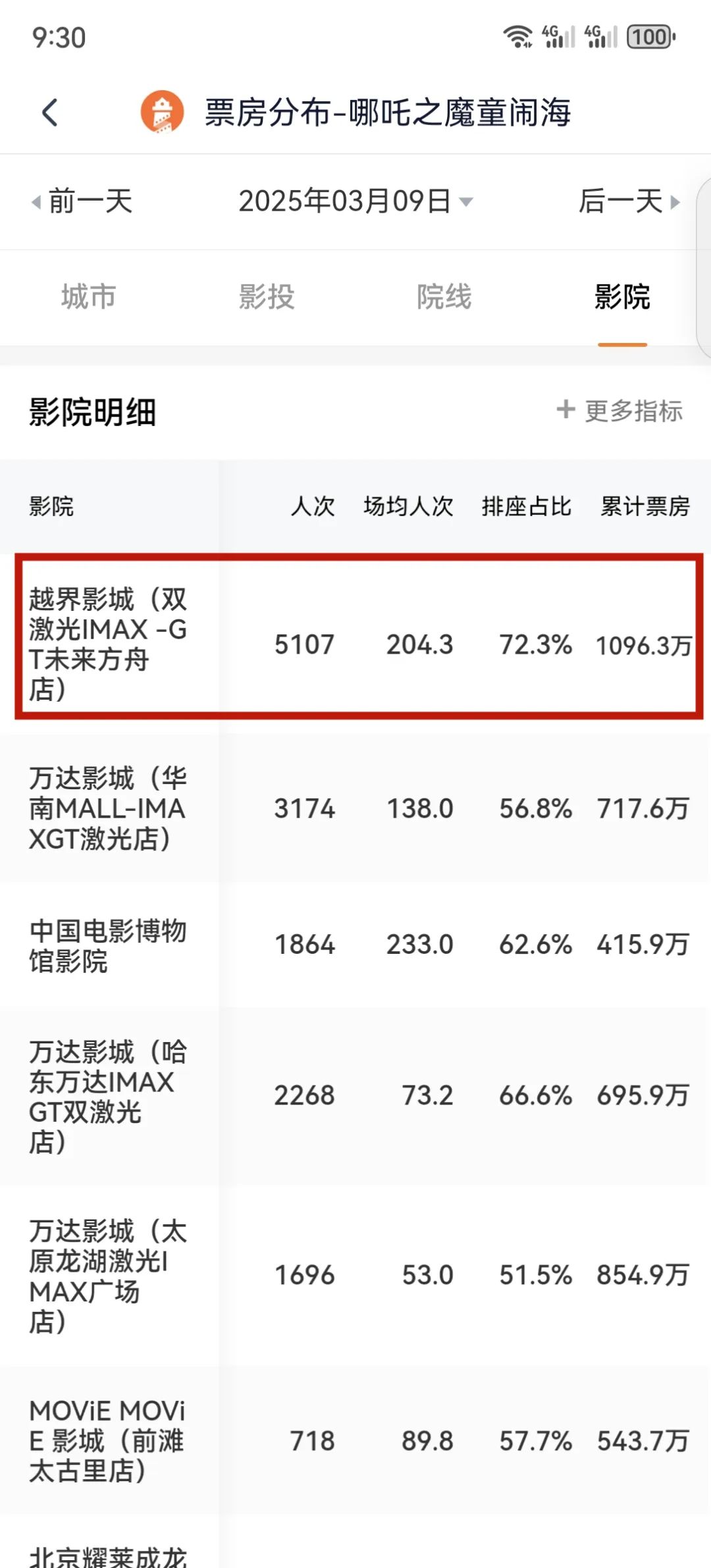 3月9日21时许,根据灯塔专业版数据显示,《哪吒之魔童闹海》(以下简称《哪吒2》)累计票房(含预售及海外票房)达148.9亿元,跃居全球影史票房第六位。贵阳越界影城凭借《哪吒2》累计票房超1096万元,位列该片全国影院票房榜首。