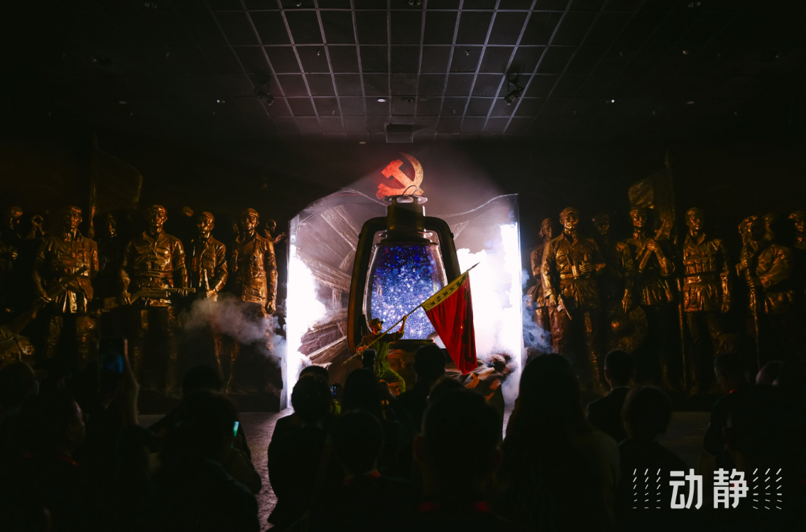 作为贵州红色文旅新业态新地标,贵州长征文化数字艺术馆(红飘带)和《伟大转折》剧目,共同构成了贵州呈现长征文化的“双子星”。机械帷幕矩阵缓缓拉开,全息影像中红军战士的身影渐渐清晰,点点灯火在光影中亮起。