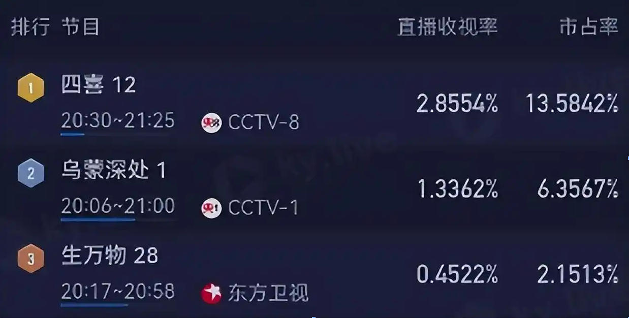 据了解,该剧在央视一套黄金档首播的两集,收视破1,全国收视第2。