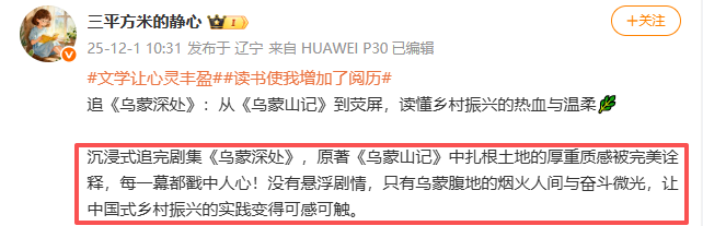 “每一幕都戳中人心!没有悬浮剧情,只有乌蒙腹地的烟火人间与奋斗微光,让中国式乡村振兴的实践变得可感可触。”